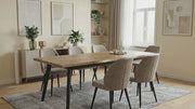 Szukasz stołu, który stanie się sercem Twojej jadalni i dostosuje się do zmieniających się potrzeb? Vega to idealna propozycja dla miłośników stylu loftowego oraz nowoczesnego designu. Połączenie ciepłego odcienia dębu z surową czernią metalu sprawia, że stół ten wprowadza do wnętrza wyjątkowy klimat, łącząc przytulność z industrialnym sznytem.