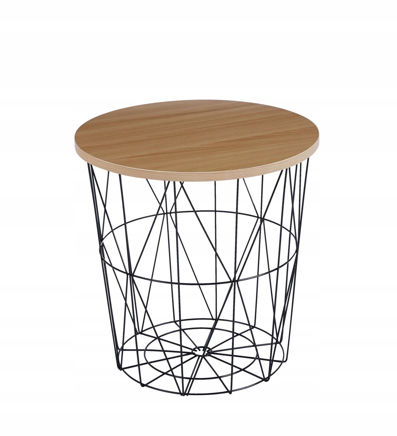 Stolik Kawowy Dąb Naturalny Kosz Ława Czarny Stelaż Furnitex