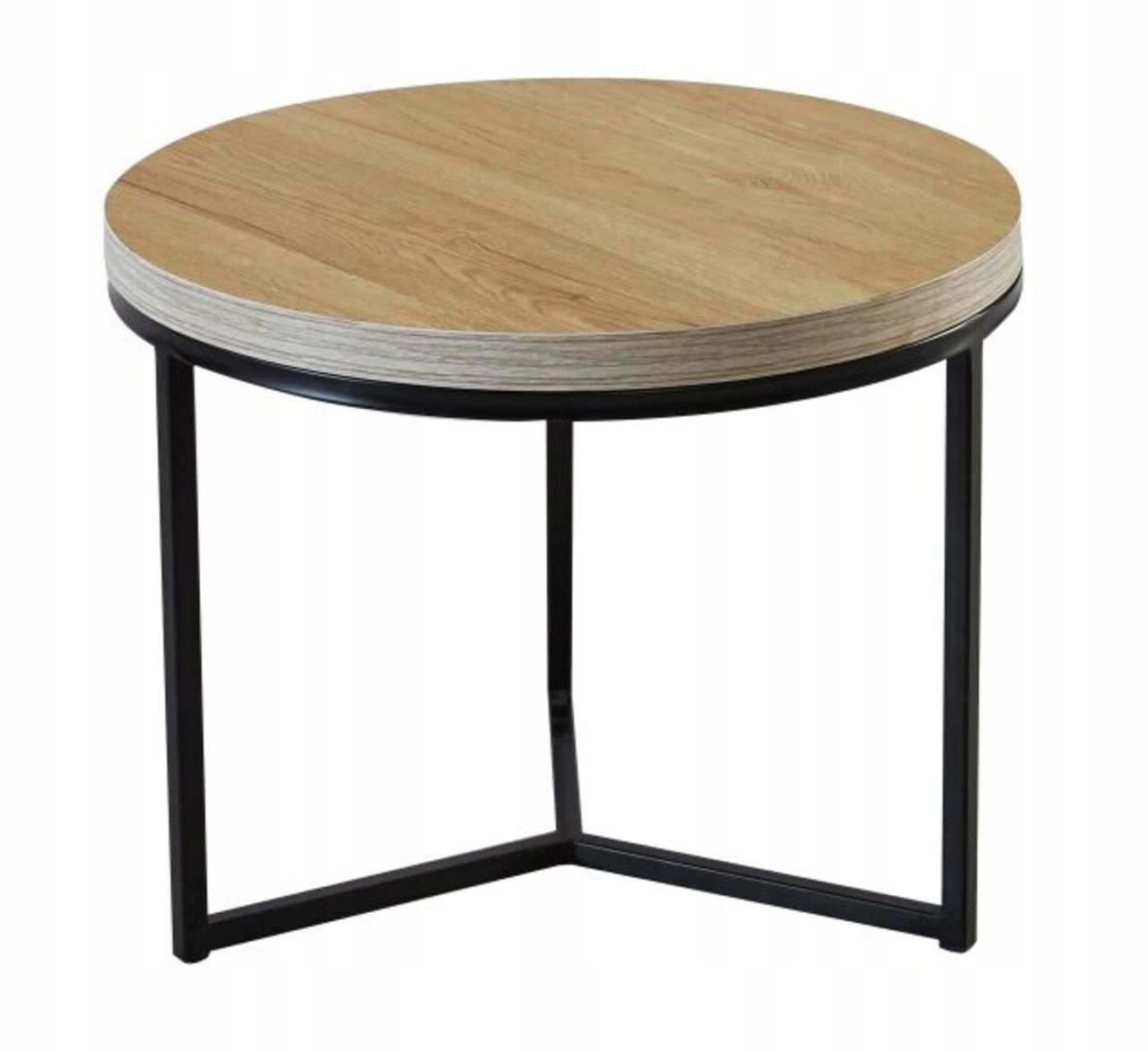 ✨Okrągły stolik kawowy dąb naturalny na czarnym stelażu