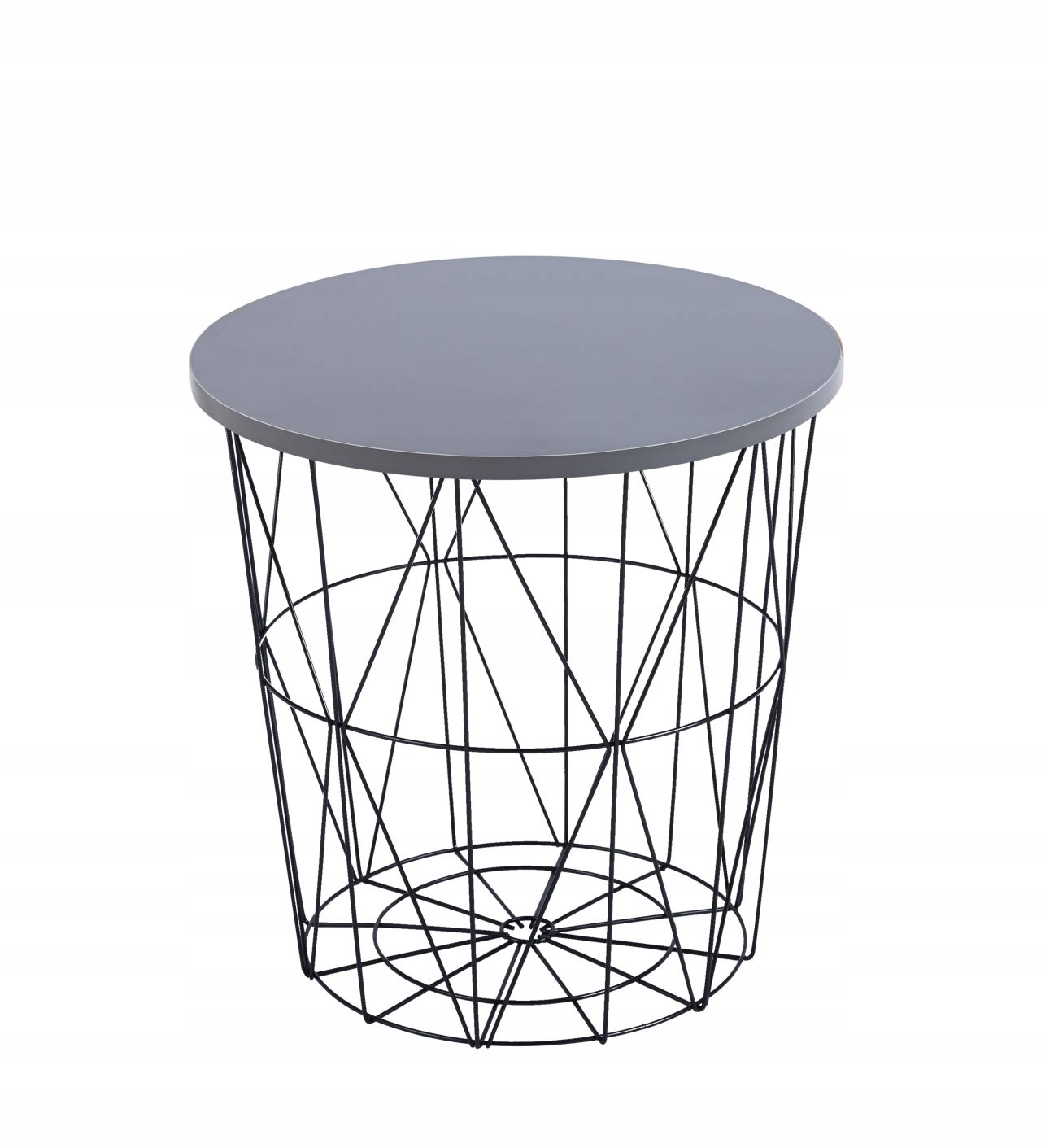 Stolik Kawowy Okrągły Szary Blat Z Schowkiem 42 X 42 Cm