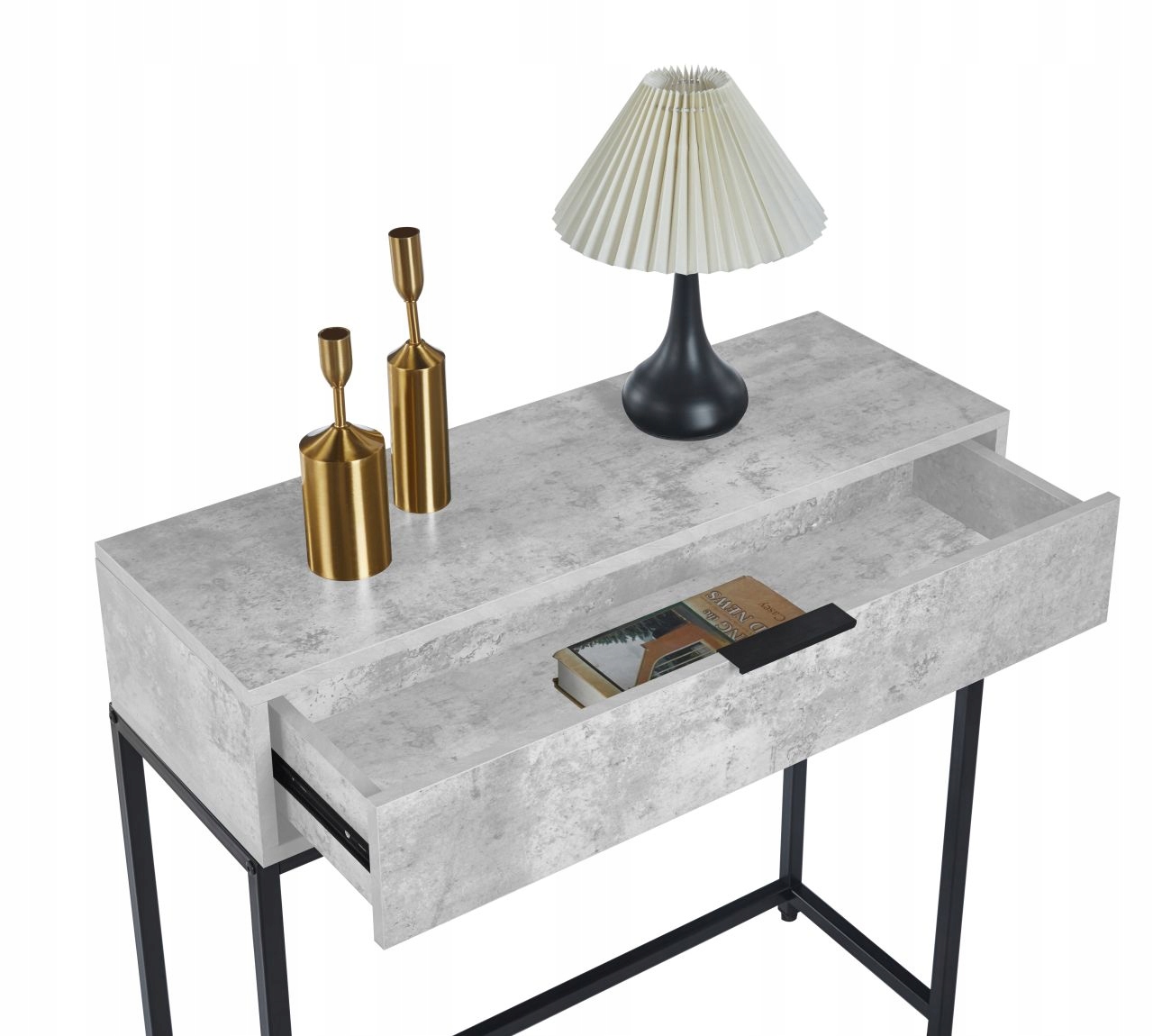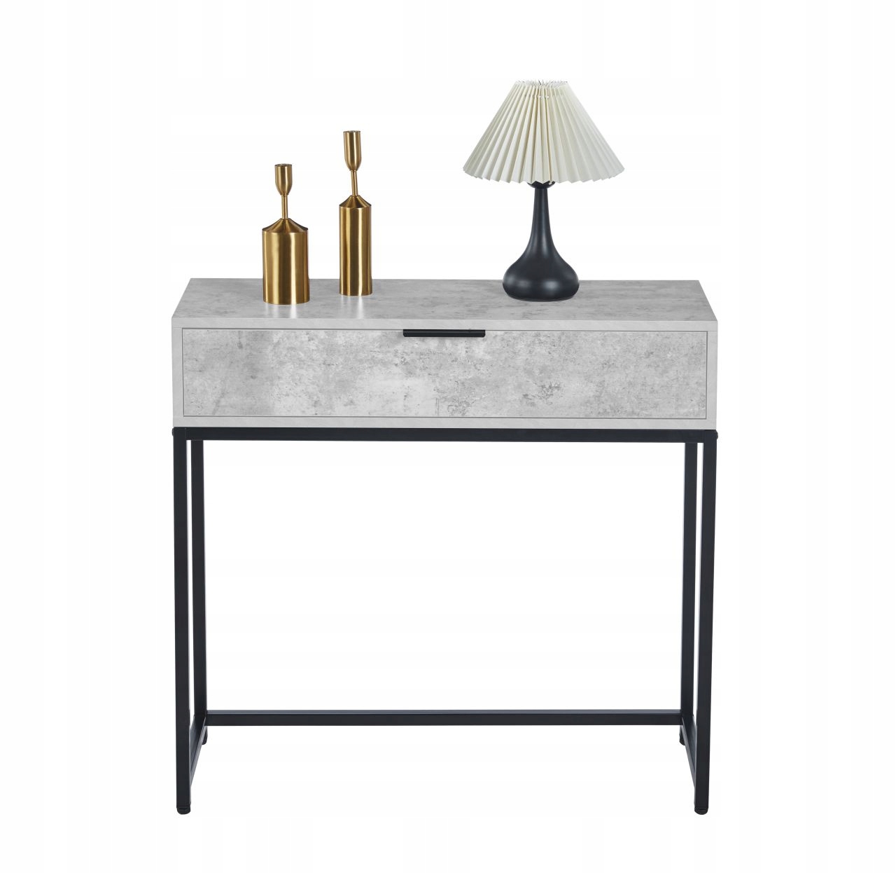 Stolik konsolowy BETON JASNY matowy z SZUFLADĄ 80 x 77 x 28cm – Furnitex