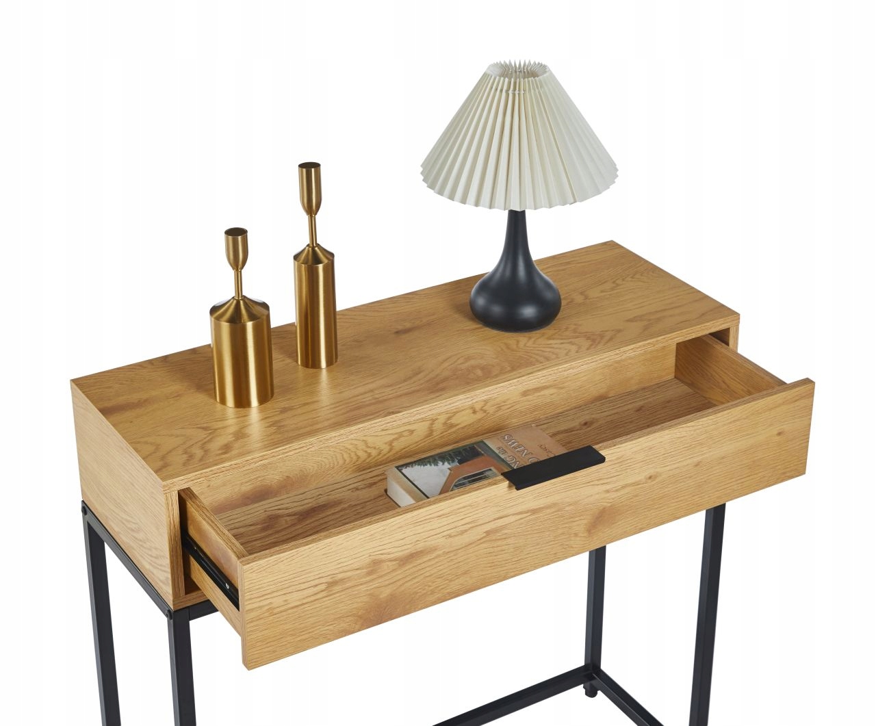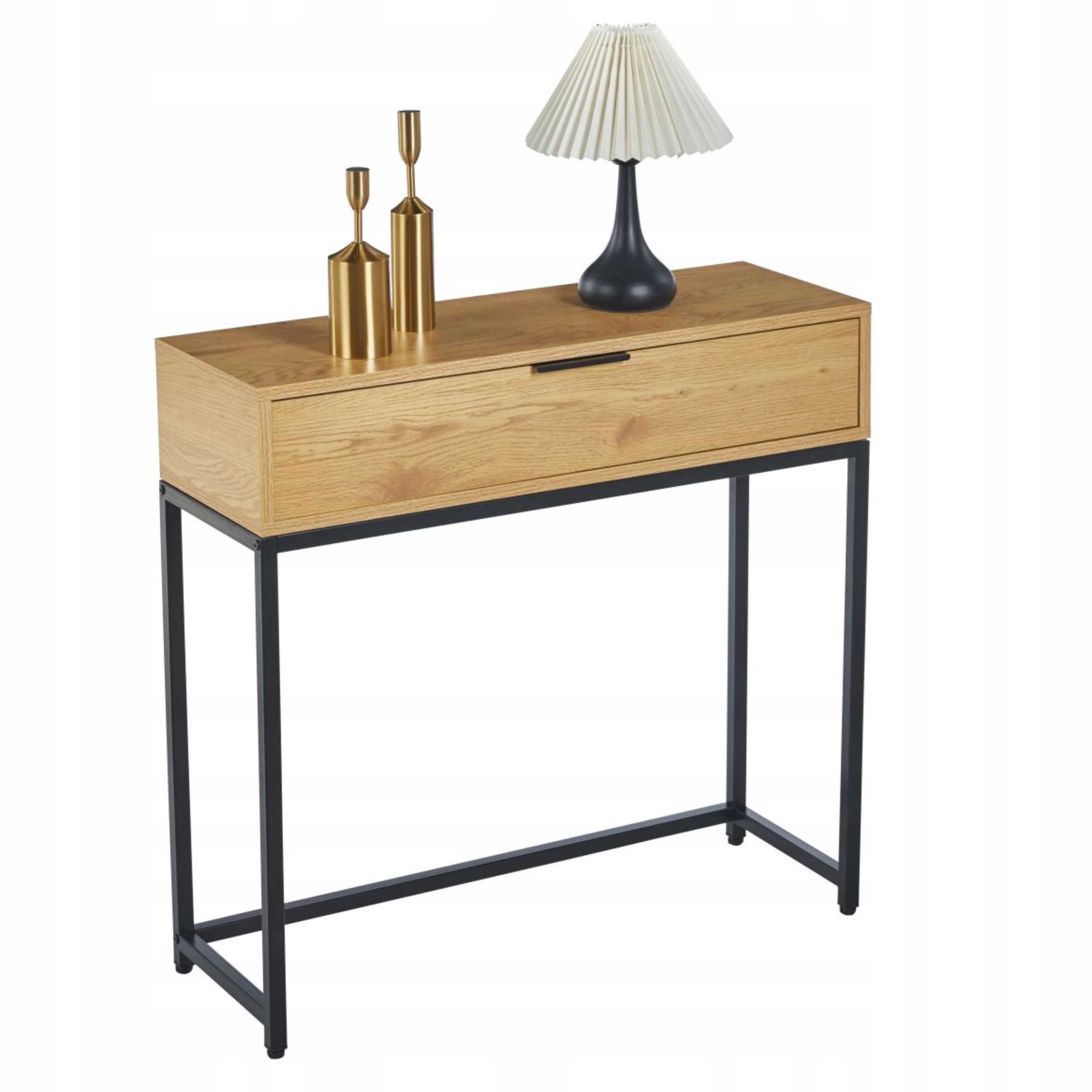 Stolik konsolowy DĄB NATURALNY Drewniany z SZUFLADĄ 80 x 77 x 28cm Furnitex