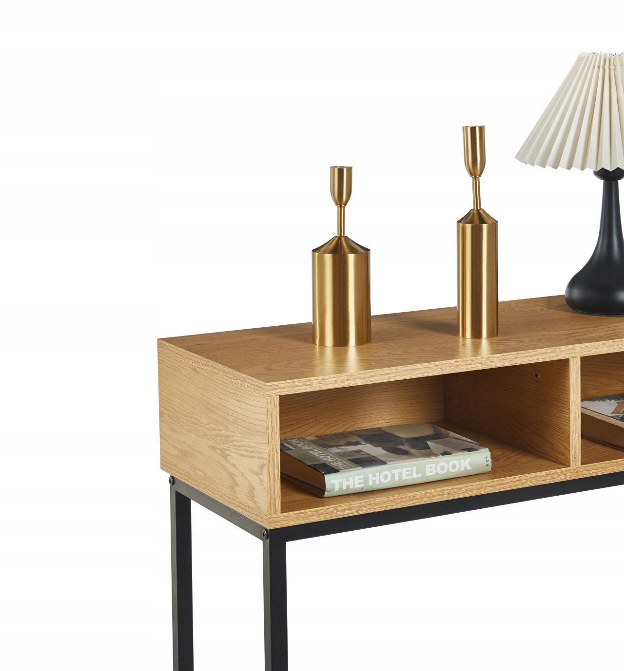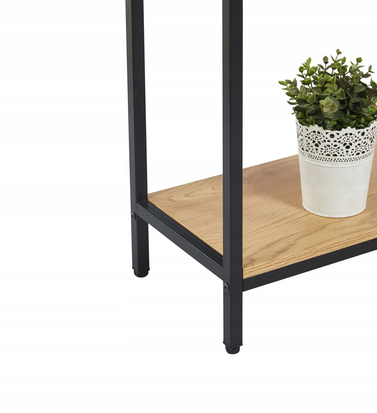 Wyjątkowo praktyczny i elegancki mebel, który łączy surowy charakter metalu z naturalnym odcieniem dębu. Solidny blat o prostokątnym kształcie i grubości 1,8 cm tworzy estetyczną podstawę, a czarne, proszkowo malowane nogi dodają lekkości i nowoczesności. Ten minimalistyczny, a zarazem funkcjonalny element doskonale sprawdzi się w przedpokoju lub salonie.