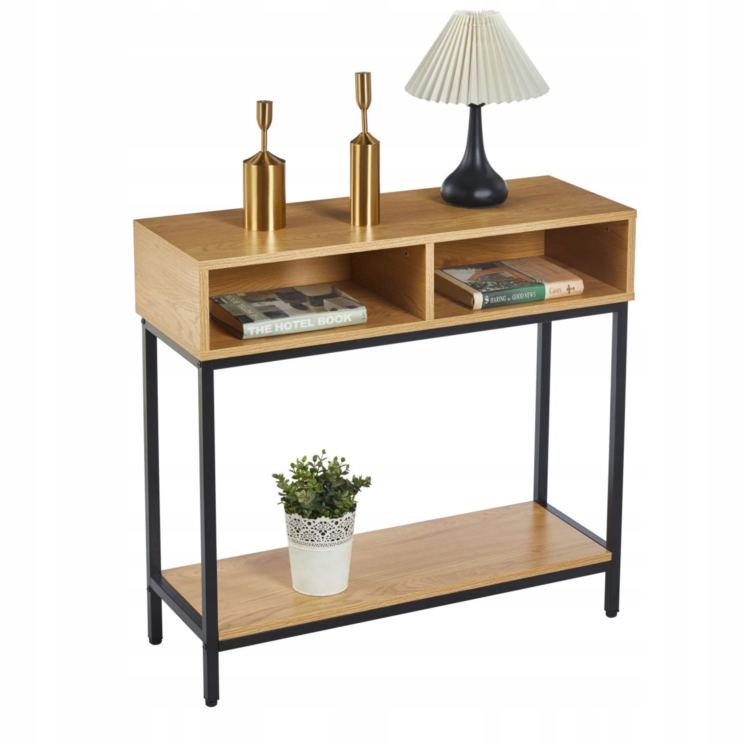 Stolik konsolowy DĄB NATURALNY półmatowy 2 PÓŁKI 80 x 75 x 30 cm – Furnitex