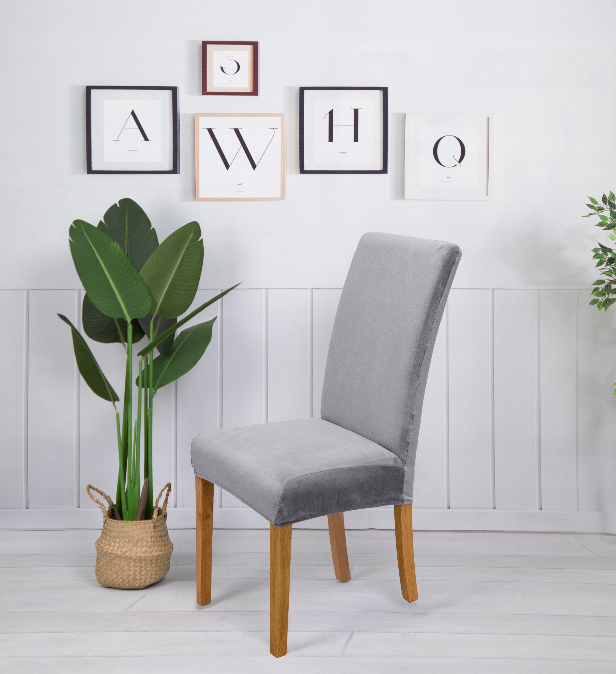 POKROWCE NA KRZESŁA UNIWERSALNY ELASTYCZNY AKSAMIT KRZESŁO SZARE WELUR