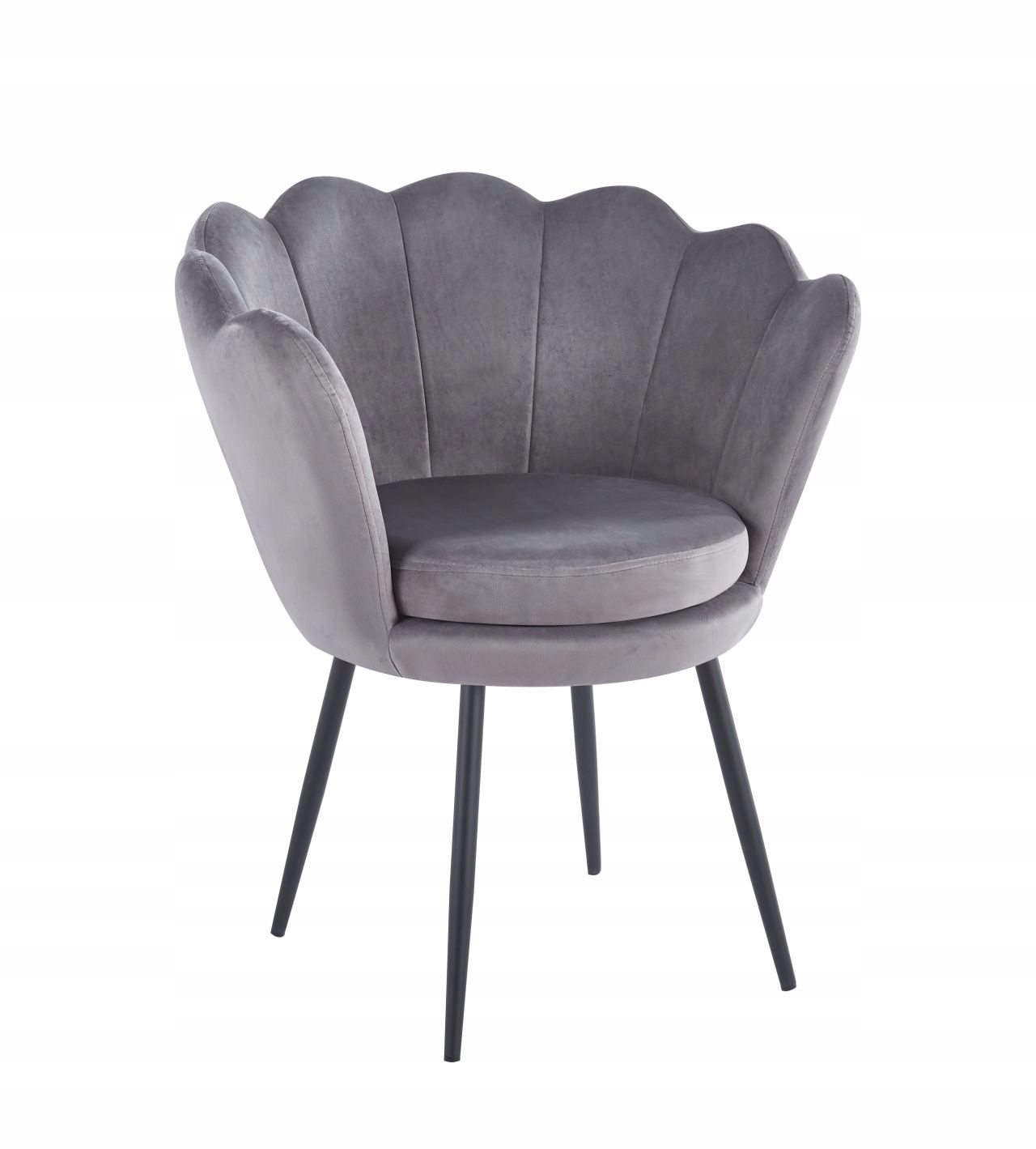 Szary Welurowy Fotel Wypoczynkowy Muszelka Loftowy