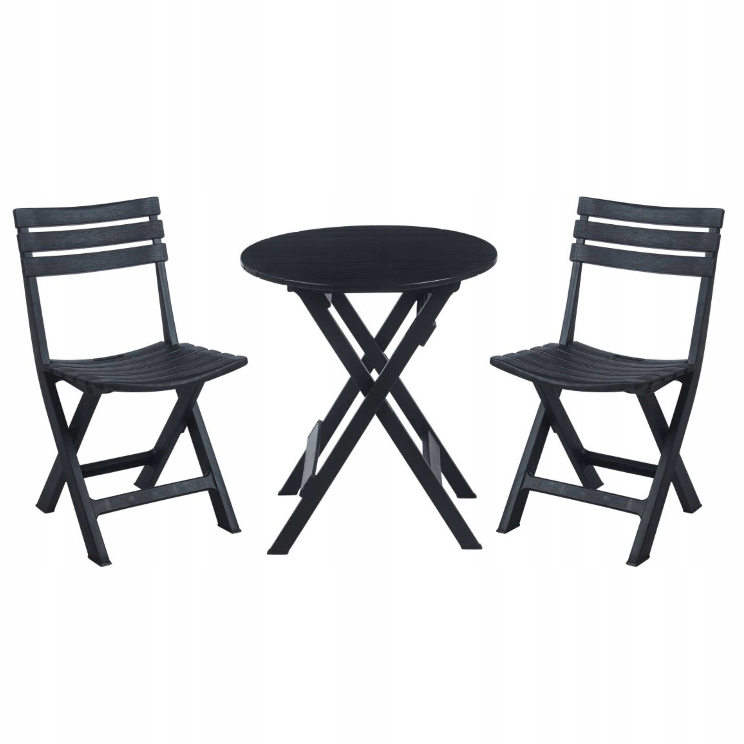 Zestaw MEBLI OGRODOWYCH Składane na DZIAŁKE BALKON Czarne 2xKrzesło 1xSTÓŁ