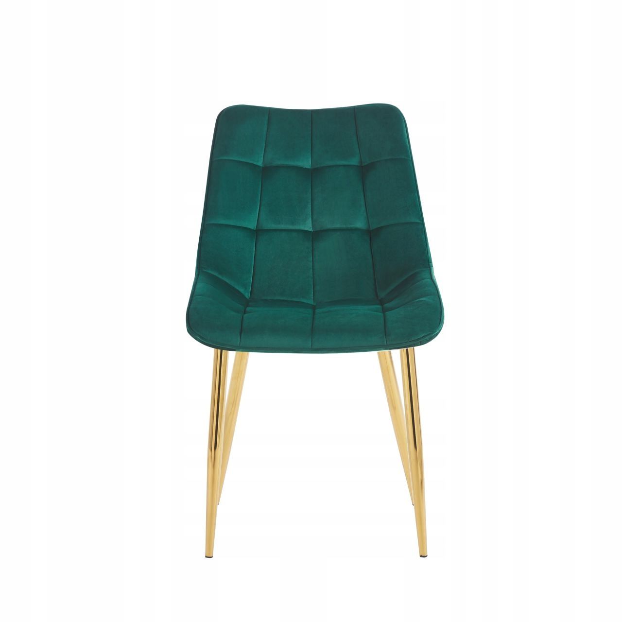Zielone Krzesło Welurowe do Jadalni Tapicerowane ZŁOTE nogi Glamour